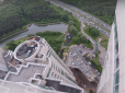 Товариш стрибуна фільмував дійство знизу. "Звичайний ранок на Позняках, – так автор підписав ролик, зазначивши, що це сталося на вулиці Драгоманова. Шоковані кияни у коментарях жартують та роблять припущення, що у будинку, напевно, не працює ліфт.
